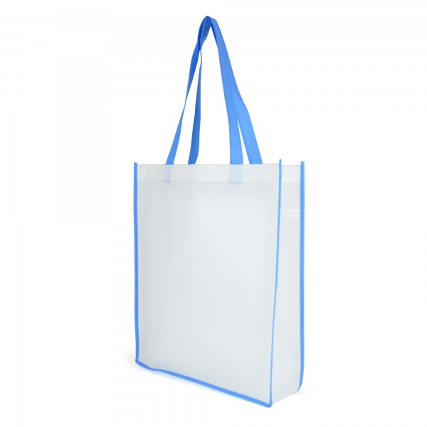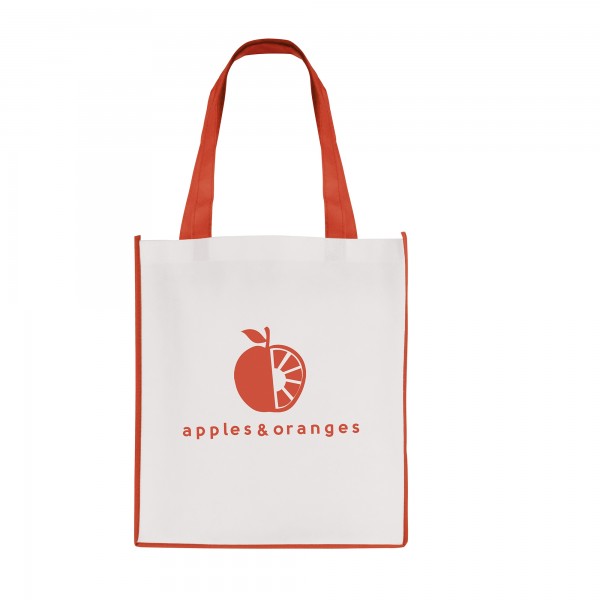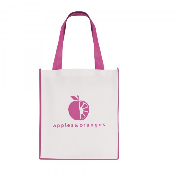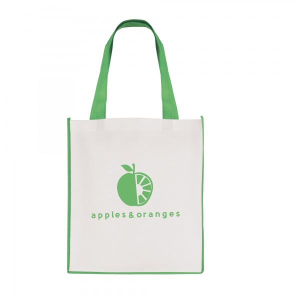 Recyclable 80gsm non woven PP mini shopper with gusset and coloured handles to match the edge trim