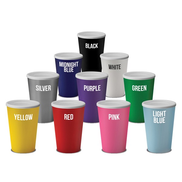 Black, White, Blue, Green, Light Blue, Purple, Yellow, Red, Pink, Orange, Silver Inner Colours - White or Black Standard Lid: Black, White, Purple, Red, Pink, Yellow, Green, Blue, Light Blue, Orange, Grey