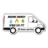 Van(90mm x 45mm), Credit card(85mm x 54mm), Telephone(55mm x 80mm), House(77mm x 63mm), Round(72mm), Recycle Box(59mm x 84mm), Wheelie Bin(85mm x 62mm), ), Oval 85mm x 54mm, Taxi shape (69mm x 71mm, Heart shape (69mm x 71mm), Oil Tanker (54mm x 43mm)