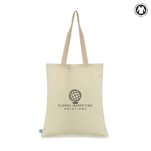 100% organic 5oz cotton shopper with long handles and a large branding area, giving you plenty of space to show off your company logo and message. This promotional bag is made to Global Organic Textile Standard (GOTS) and can be recycled over and over again and made in to something new, so you can be sure this is the perfect sustainable option for exhibitions and trade shows where you want to boost your company’s sustainable credentials. Available in natural. Order yours today.