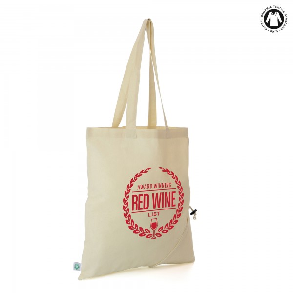 Give your brand the edge with these environmentally friendly shopper bags. This 100% organic cotton tote bag is a sustainable and stylish solution for carrying your shopping, groceries and more from A to B, or giving away as a promotion at exhibitions and conferences. This GOTS certified bag has been created to be durable and fashionable, featuring a convenient corner pouch that can be used to fold the bag inside, making it easy for on the go. This natural organic cotton shopper can be branded with your company logo for an environmentally conscious promotional campaign for any occasion. Order yours today.