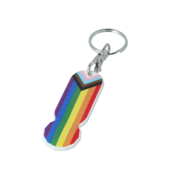 A handy oblong shaped trolley coin stick. Simply add your logo to the iconic Pride design. Print branding area 61mm x 21mm. Your logo can be positioned to the front and back. Comes with lobster-clip attachment. Made in the UK from white recycled plastic.